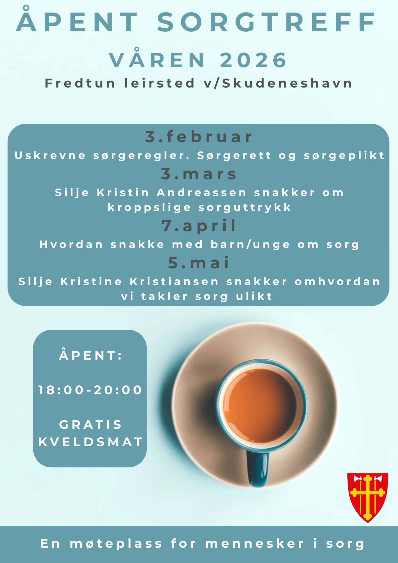 Åpent Sorgtreff arrangeres på Fredtun leirsted v/Skudenes, og er et tilbud til folk på hele Haugalandet. Det arrangeres i første omgang tre samlinger, med mulighet for forlengelse av tilbudet.